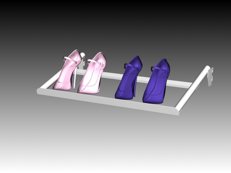 Prateleira inclinada para calçados, bolsas e acessorios.